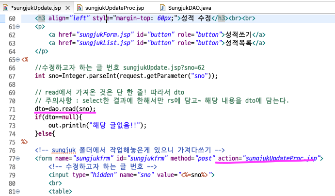 수정 후 결과 페이지인 sungjukUpdateProc.jsp파일을 작성해주어야한다.