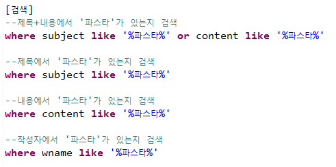 - 파스타라는 글을 검색하면 파스타만 나오도록 하는 것.