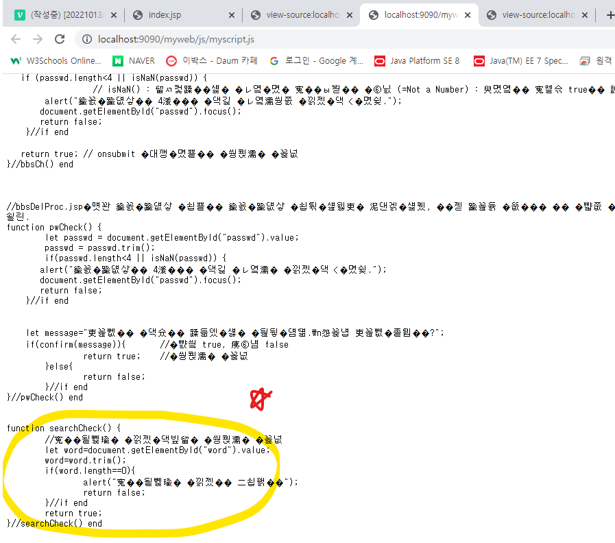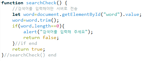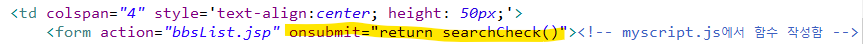 - form에 return시켜주는 searchCheck() 기능 코드 추가해주기