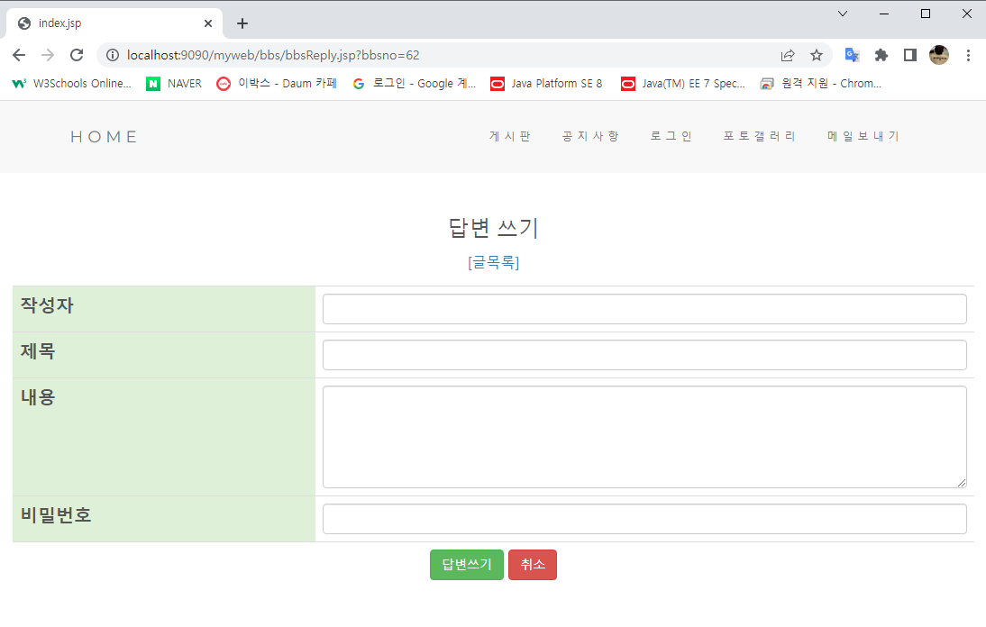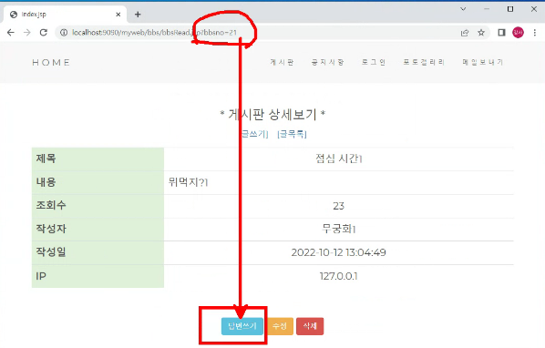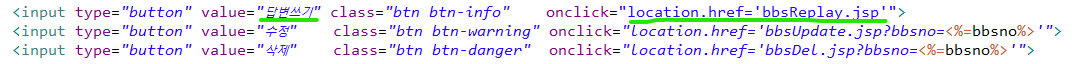 (1) bbsRead.jsp에 적용한 답변쓰기 버튼