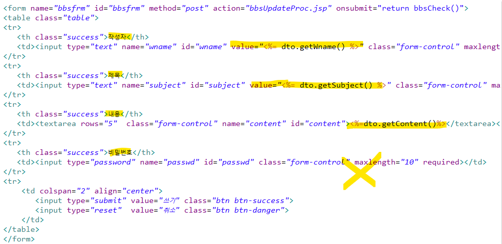 - bbsUpdate.jsp 폼에 입력했던 값의 name을 확인한다.