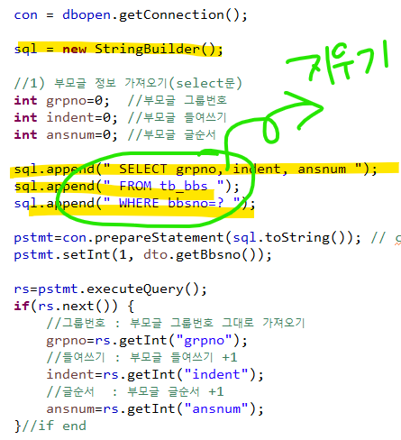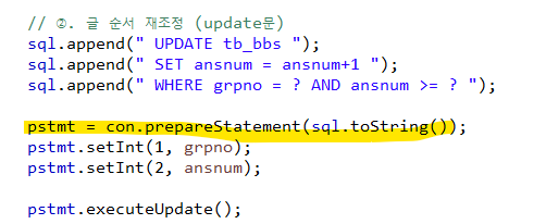 (1) 2번 글순서 재조정에서 pstmt 변수 선언 안했음..