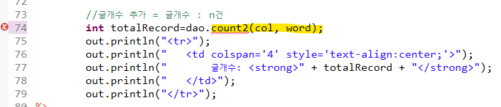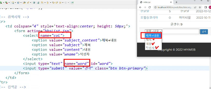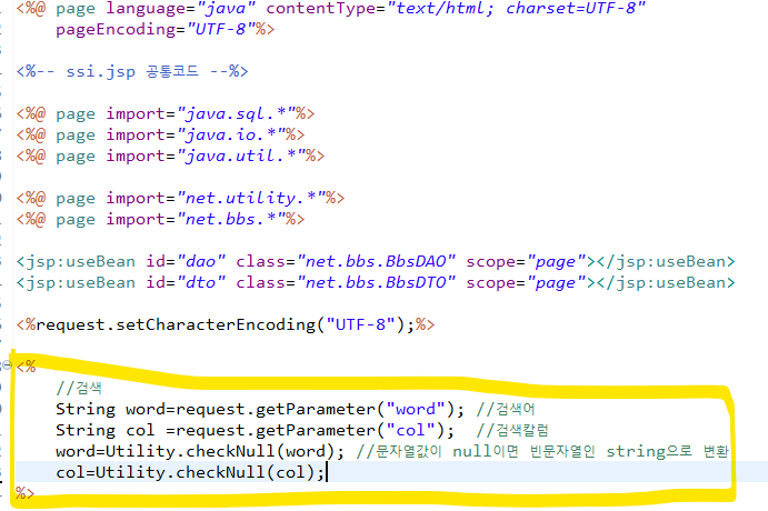 (3) col(카테고리)과 word(검색창)는 계속 반복적으로 가져올 것이기 때문에 ssi.jsp 공통코드에 넣기