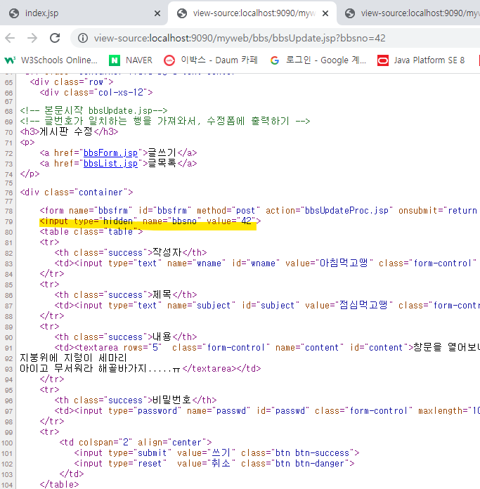 ➡️ 사용자에겐 노출시키지 않는 hidden 값을 주어서 bbsno값을 만들어준다.