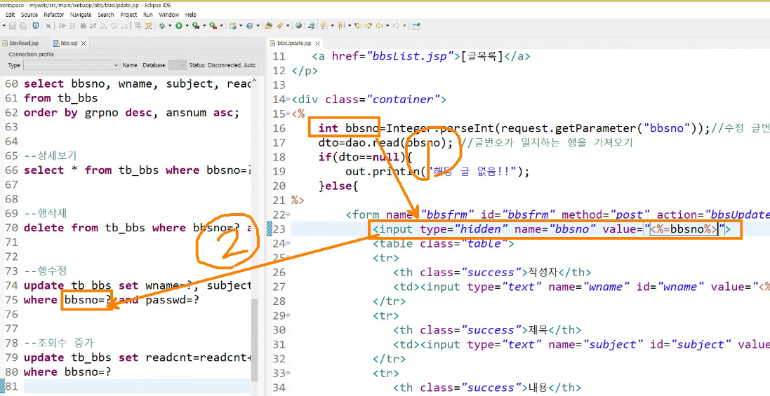 (1) bbsUpdateProc.jsp에서 복사해오기