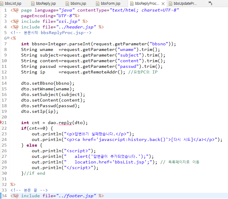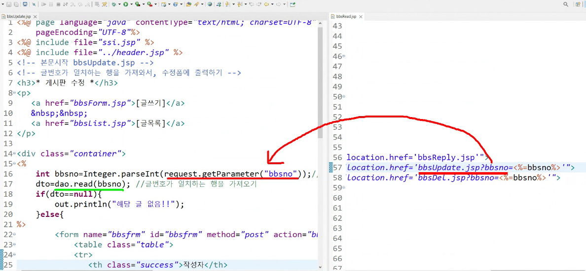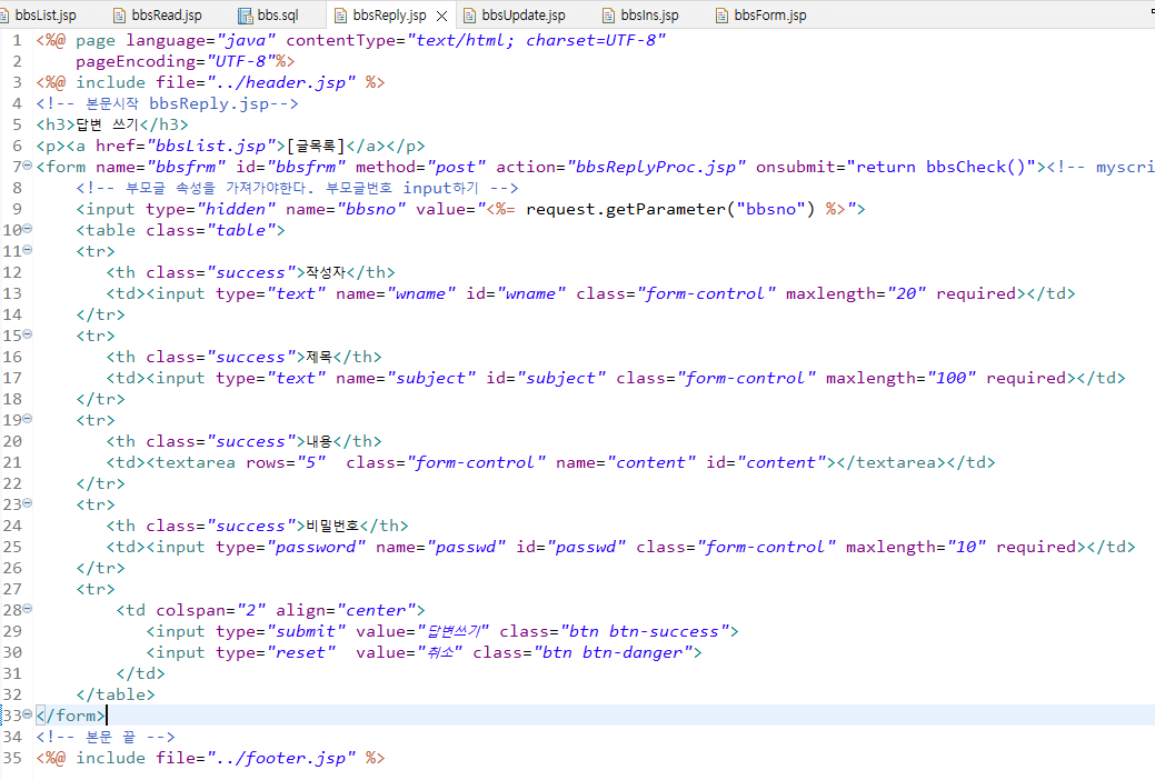 - bbsRead.jsp 페이지에서 → bbsReplay.jsp로 넘어가는 것이다.