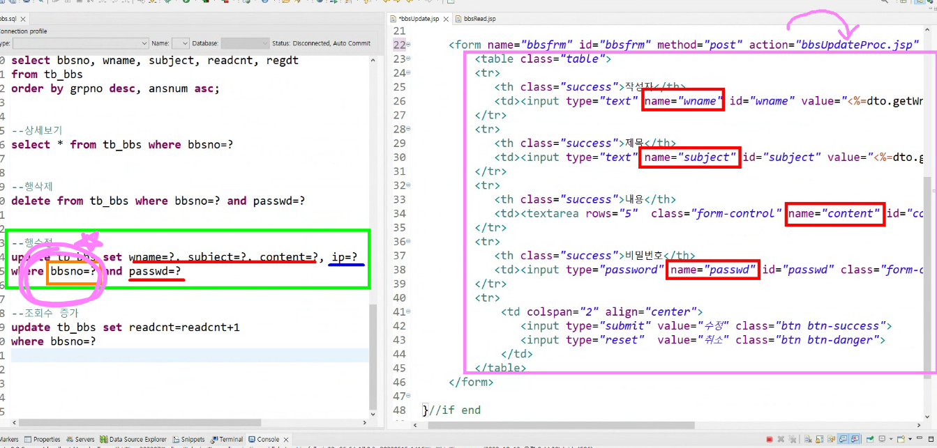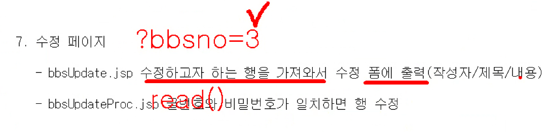 - 분홍색 박스를 bbsUpdateProc에 보내주는 것인데