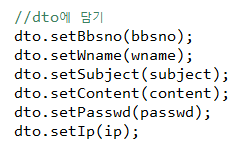 - dto 객체에 담는다. (net.bbs/BbsDTO.java 확인하면 된다.)