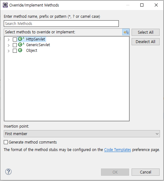 servlet 태그를 ctrl+space로 불러올 수 있다.