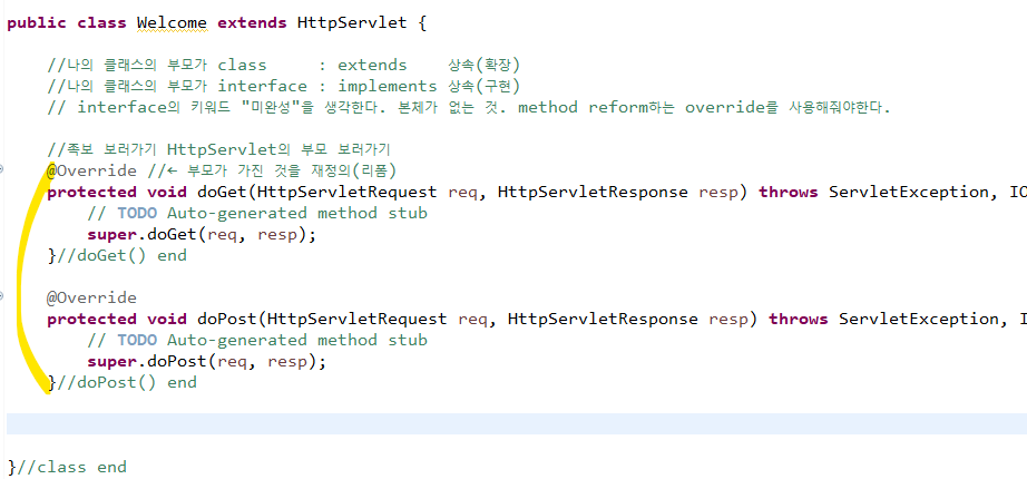 HttpServlet 클래스 - 이미 만들어진 것을 잘 활용하면 된다.