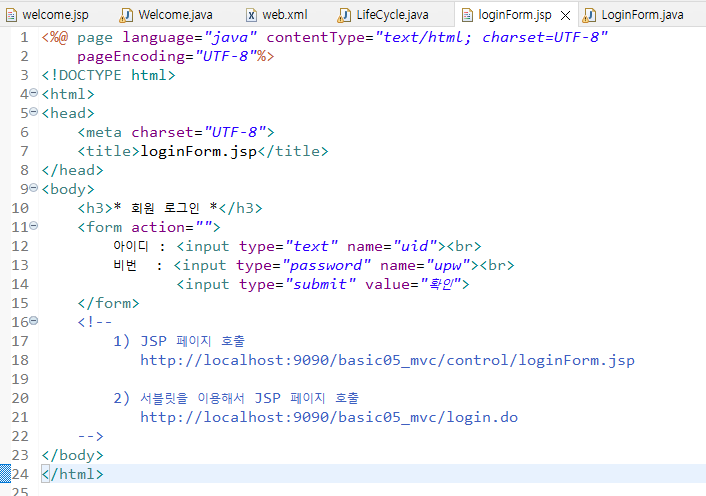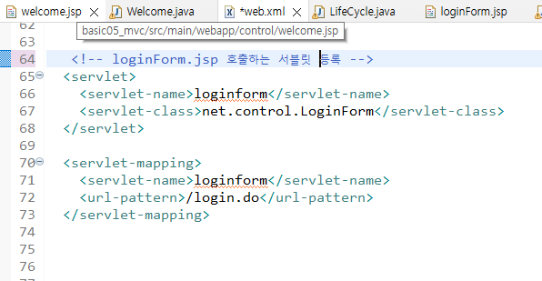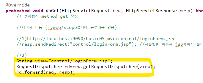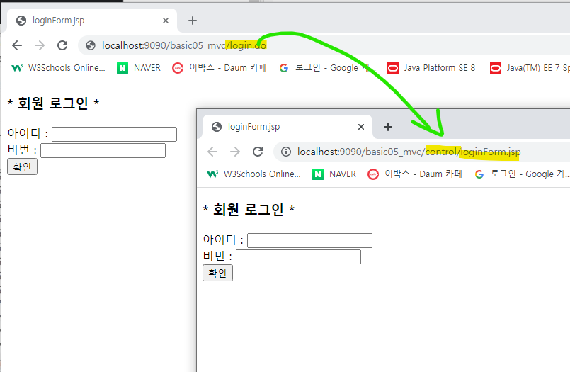 http://localhost:9090/basic05_mvc/login.do 로 검색하면 jsp주소 http://localhost:9090/basic05_mvc/control/loginForm.jsp 이 경로로 나옴.