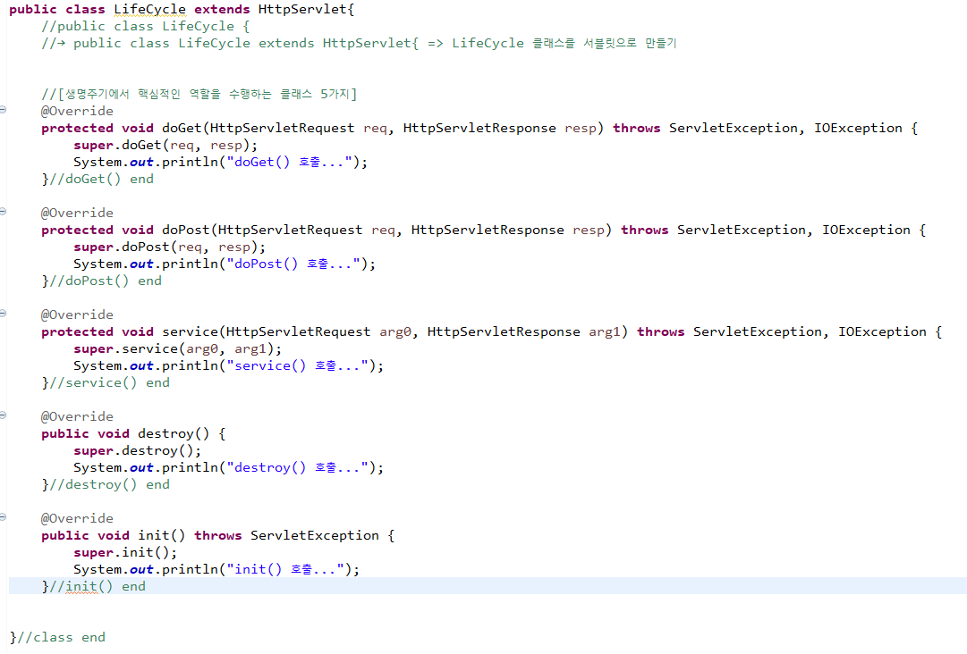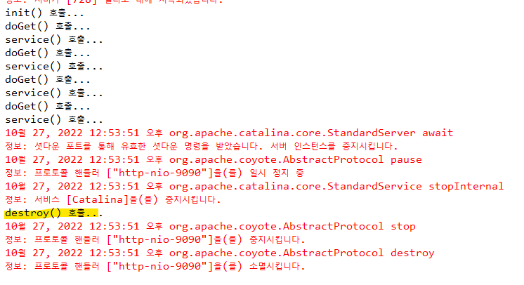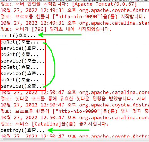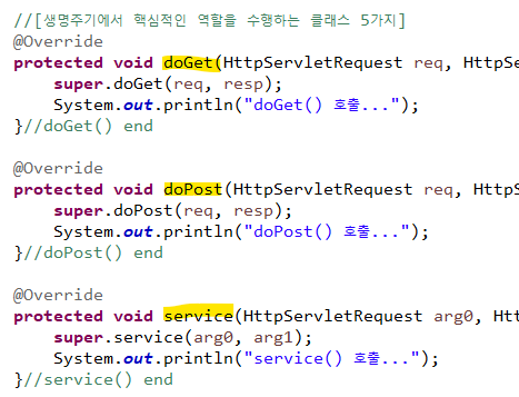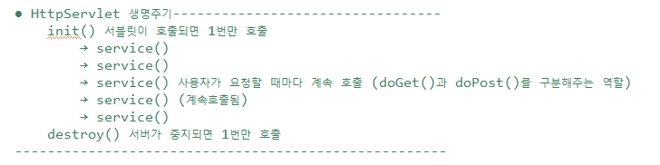 참고 : 교재 2.2.5 콜백메소드와 서블릿객체의 생명주기