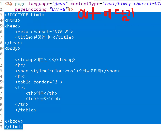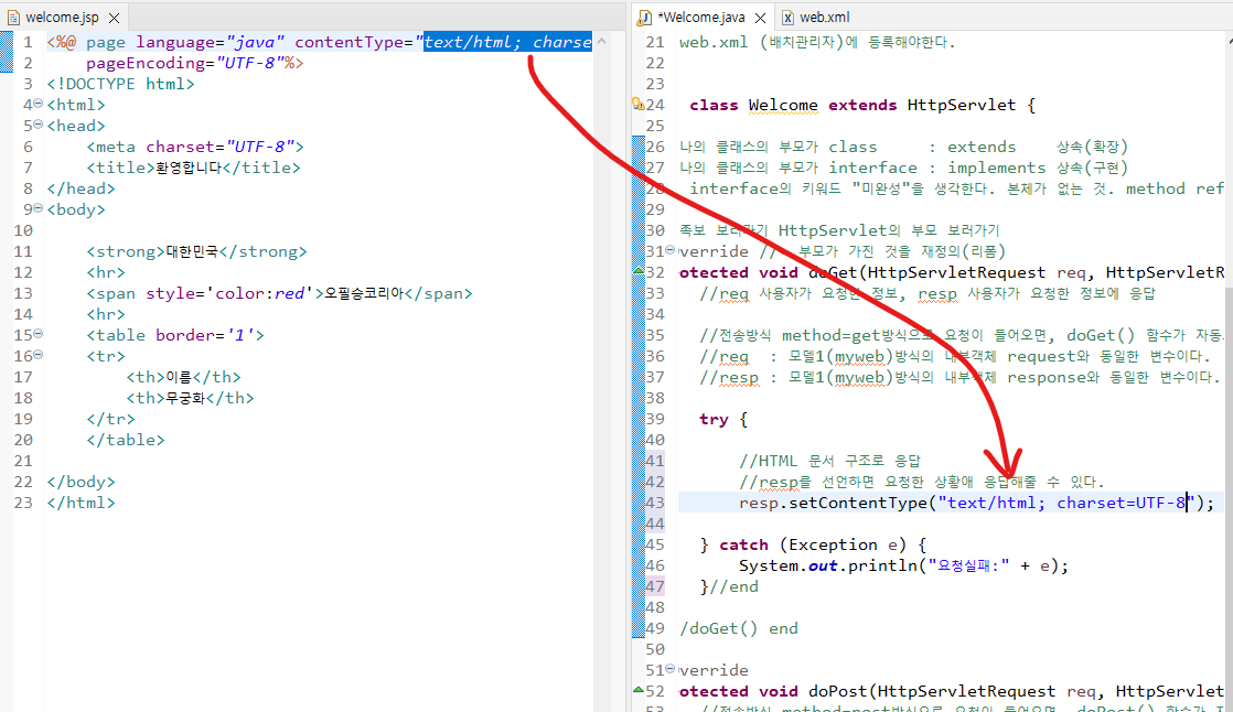 - welcome.jsp에 있는 contentType을 넣어주면 된다.