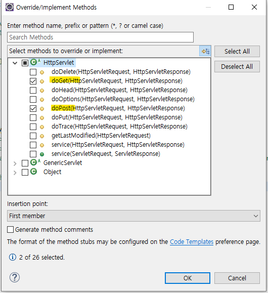 doGet(), doPost() 오버라이드 한 후 페이지 이동하는 함수 senRedirect()로 페이지경로 불러오기