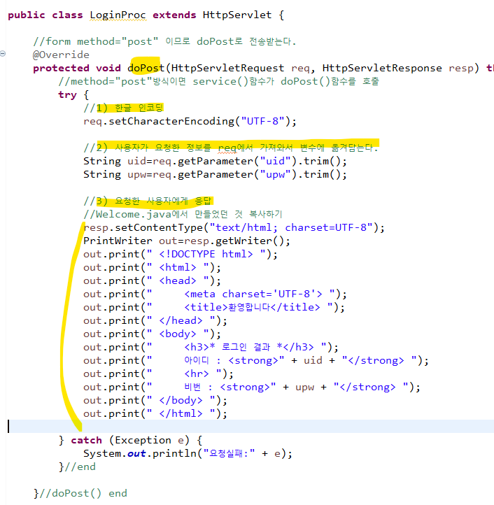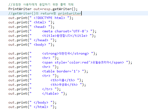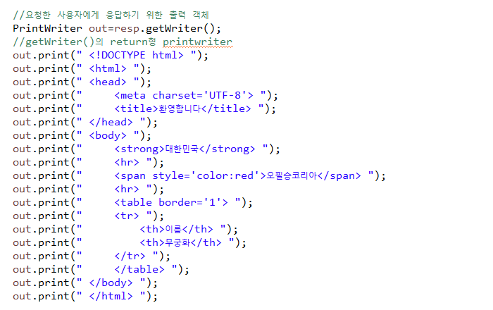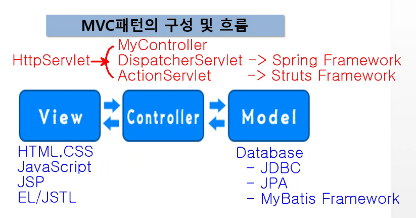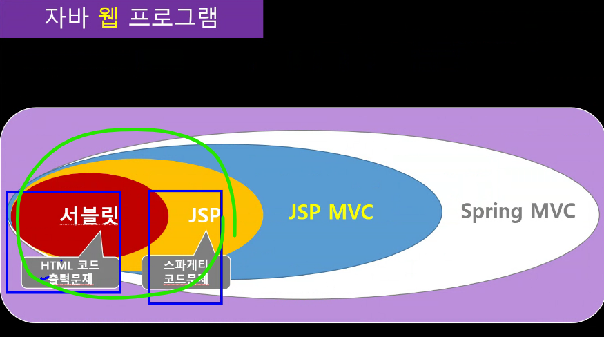 -> JSP는 backend단을 구성하기 힘들고, servlet은 frondend단을 구성하기가 힘들다는 걸 알 수 있다..