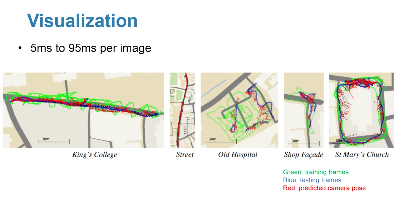 이 논문을 평가를 하자면 CNN 네트워크를 기반으로 end-to-end형식의 camera pose localization을 최초로 제시하였다는점에 높게 평가 받고 있습니다.
