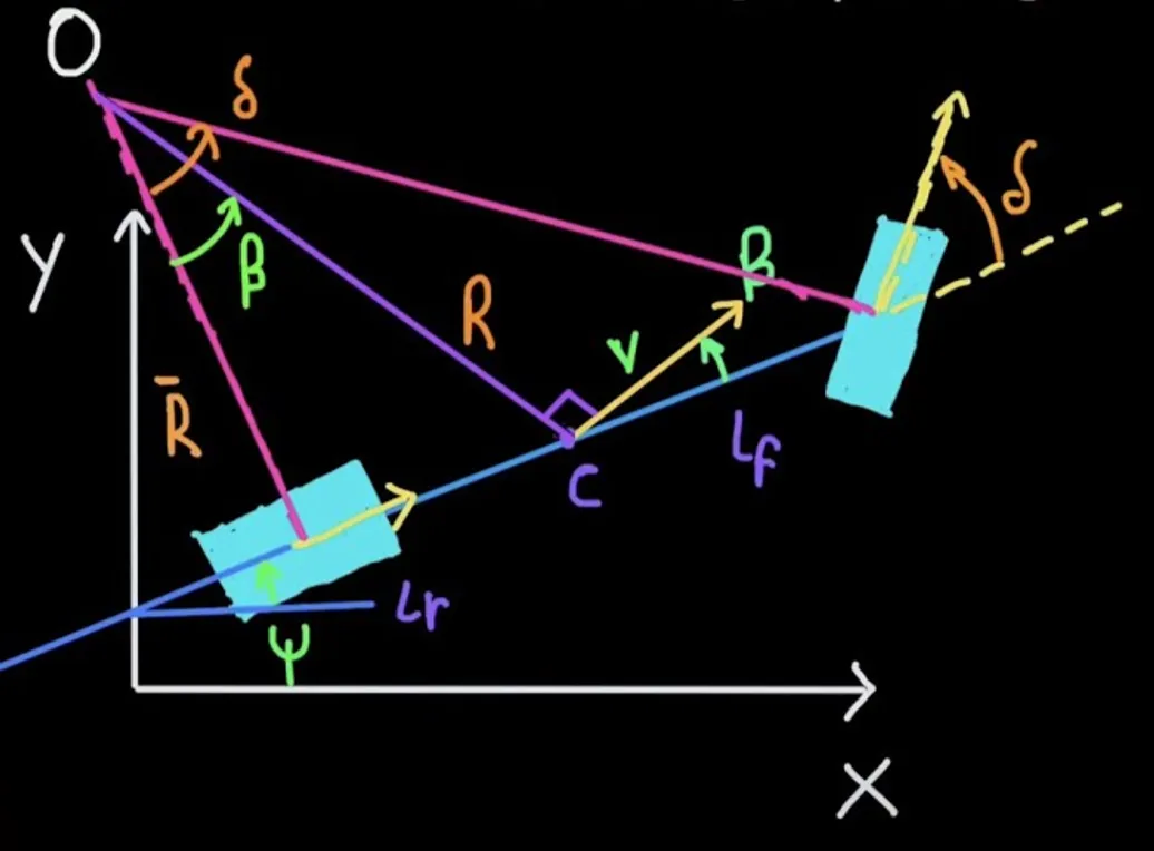 관련된 수식은 위와 같으며 Kinematic bicycle model에 의해