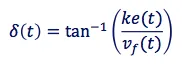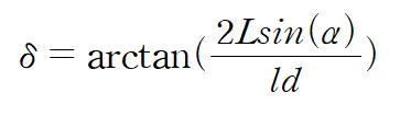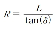 이 되며 결과적으로 조향각δ는 다음과 같이 정의됩니다.