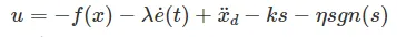 다음으로 외란이 들어왔을 때 및 Sliding Surface에 안착하도록 추가적인 입력값을 Signum함수를 통해 보정해준다.