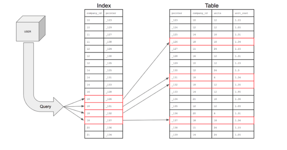 인덱스가 DB의 "목차"같은 역할을 담당한다.