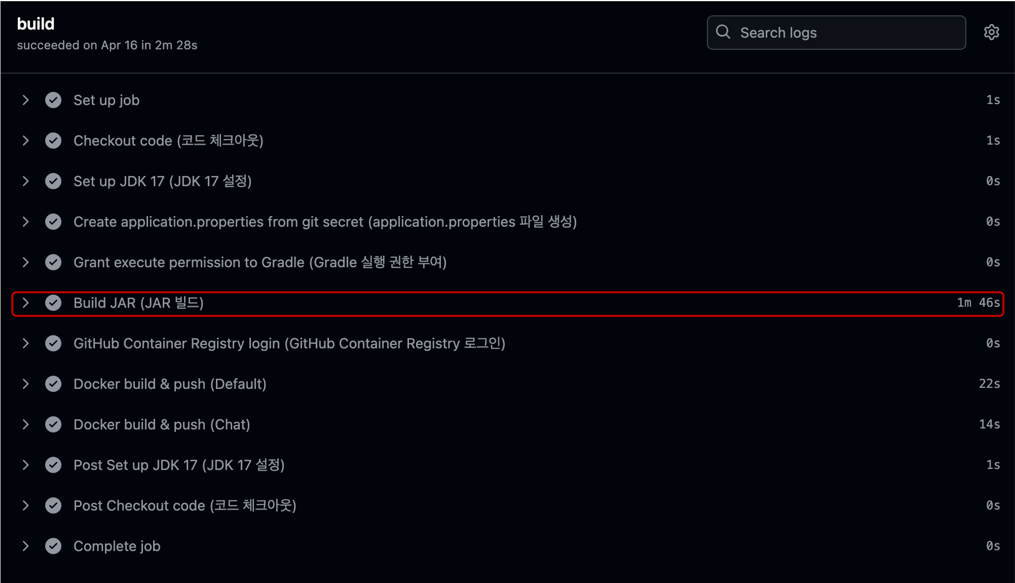- name: Build JAR - Default (JAR 빌드 - 디폴트)
