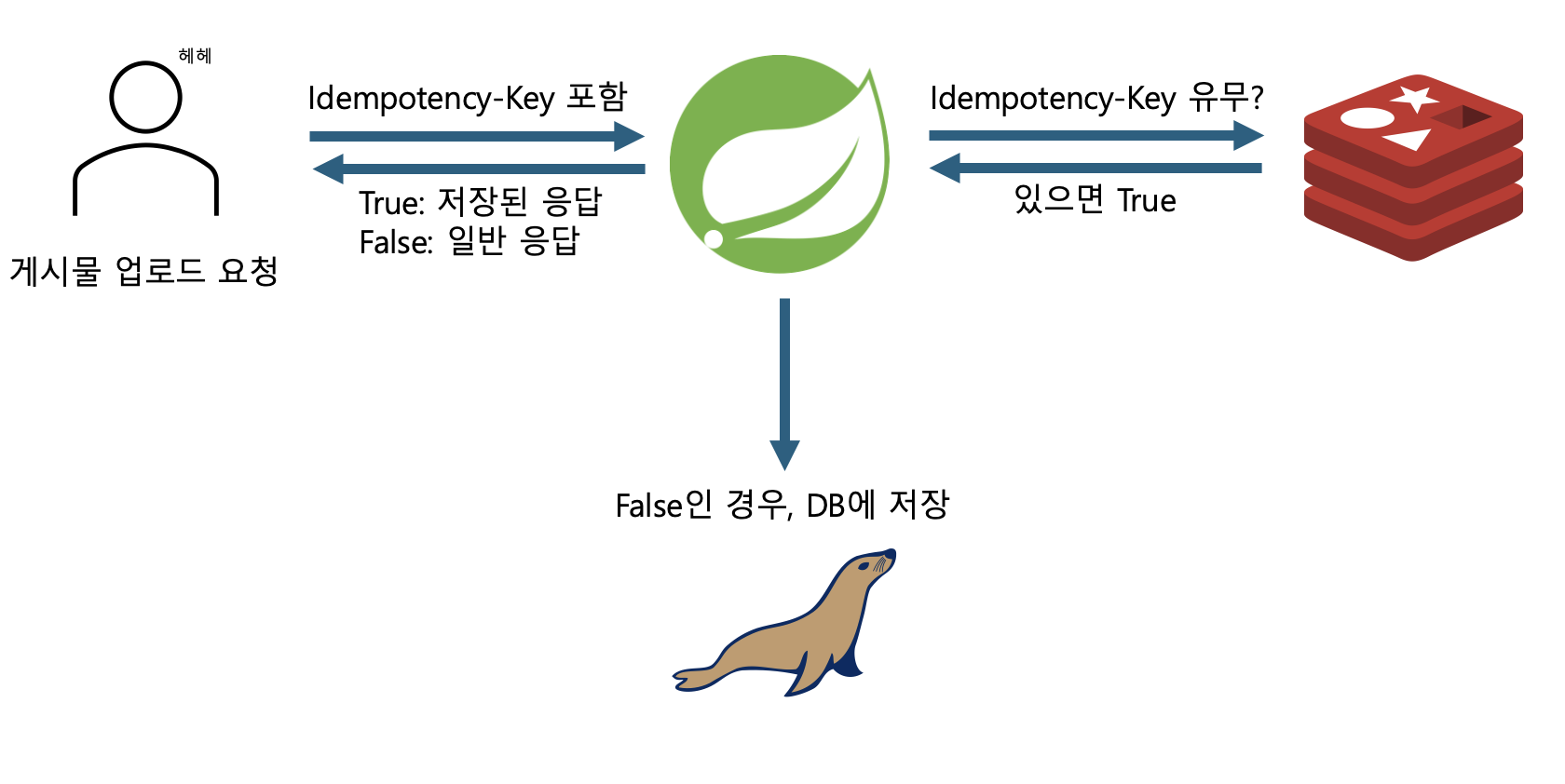 만약 같은 멱등키가 없다면, 새로 게시물을 DB에 저장하고