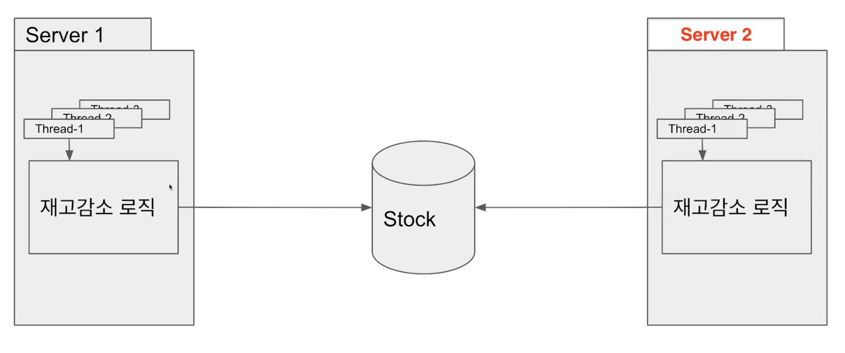 당연히 A(Server 1)는 B(Server 2)의 스레드에 대한 동시성을 제어할 수는 없다.