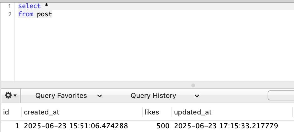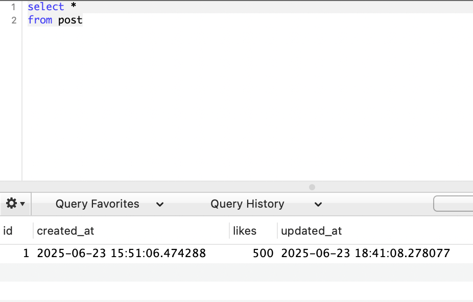 커밋을 한 후, synchronized에 의해 락이 걸려 있던 likePost() 메소드가 풀리면서, 정상적으로 다음 스레드가 likePost()를 다시 실행한다.