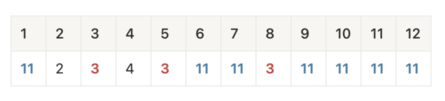 나머지 집합은 루트가 11이고 {1, 6, 7, 9, 10, 11, 12}가 한 집합이 된다.