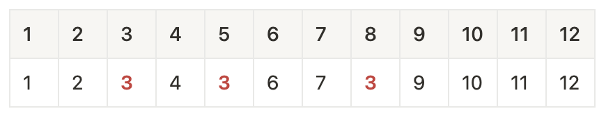 {3, 5, 8} {1, 6, 7, 9, 10, 11, 12}