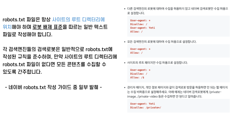 특히, 크롤러처럼 웹을 가리지 않고 탐색하는 프로그램일 경우 꼭 robots.txt를 따르세요.