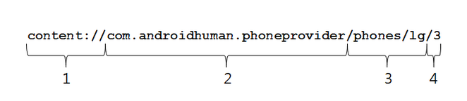 Uri는 위의 그림처럼 구성되있으면 2번과 3번부분을 authority와 path라고 부릅니다. addURI메서드를 이용하여 authority와 path 그리고 code 값을 넣습니다. 이때 code 값은 match() 메소드 사용 시 일치한다면 반환하는 정수를 의미합니다.