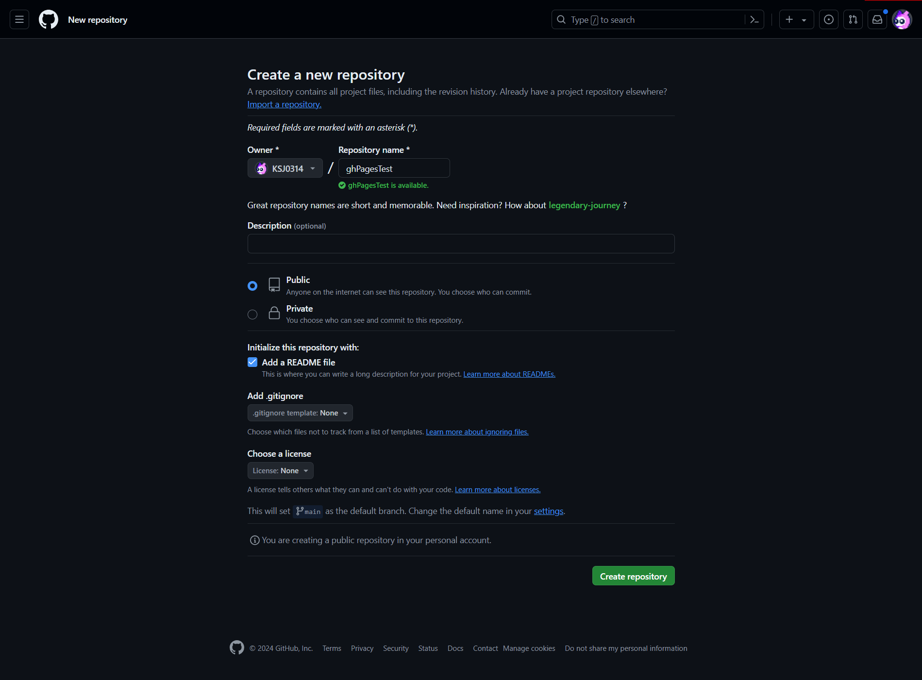 으로 메인페이지를 호스팅하고 싶으면 레포지토리명을 사용자명.github.io