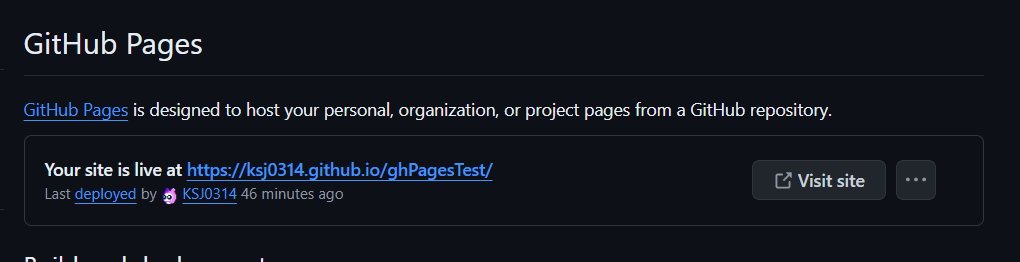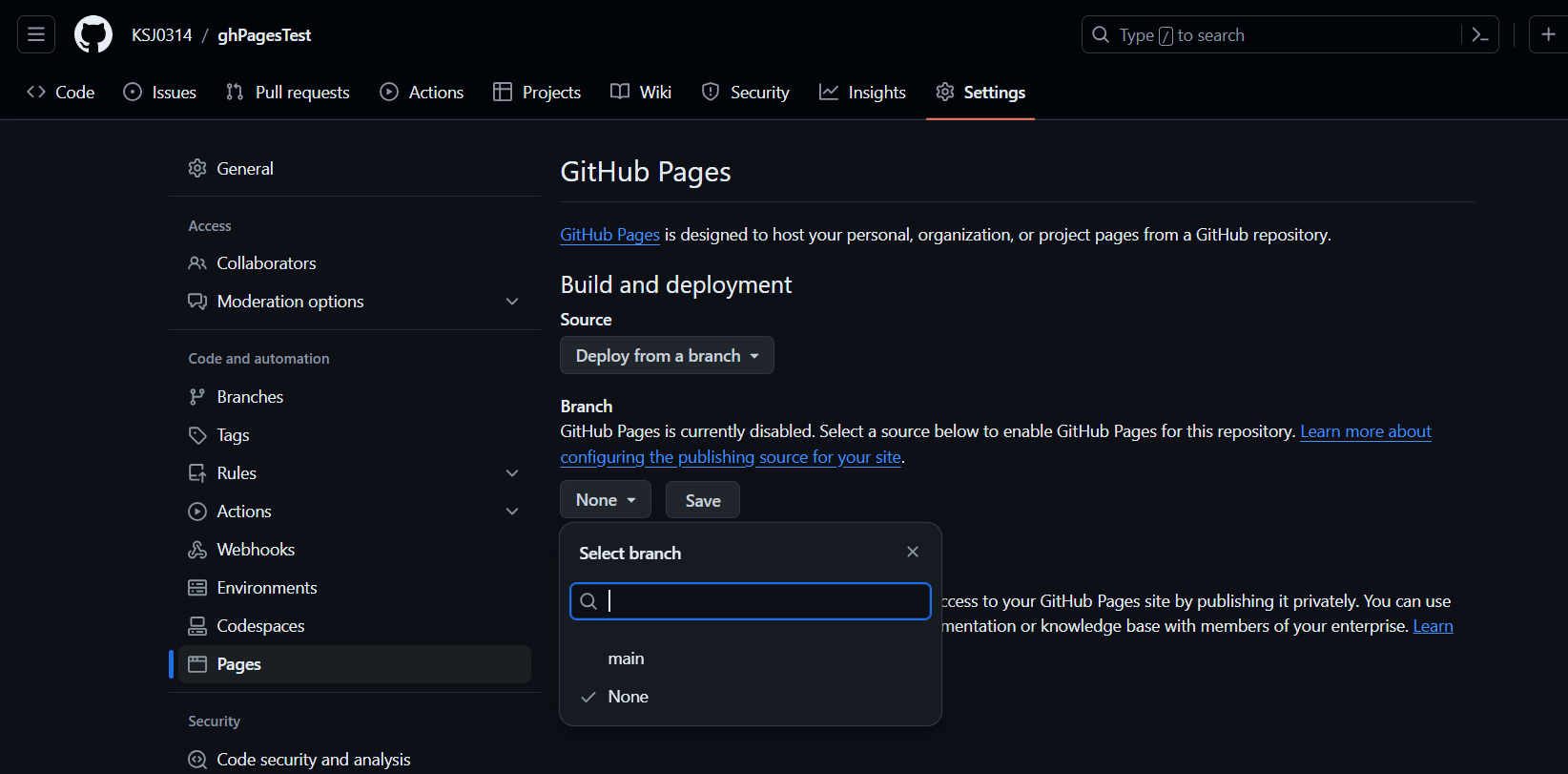 항목을 체크해줍니다.※ GitHub Pages는 해당 레포지토리의 index.html