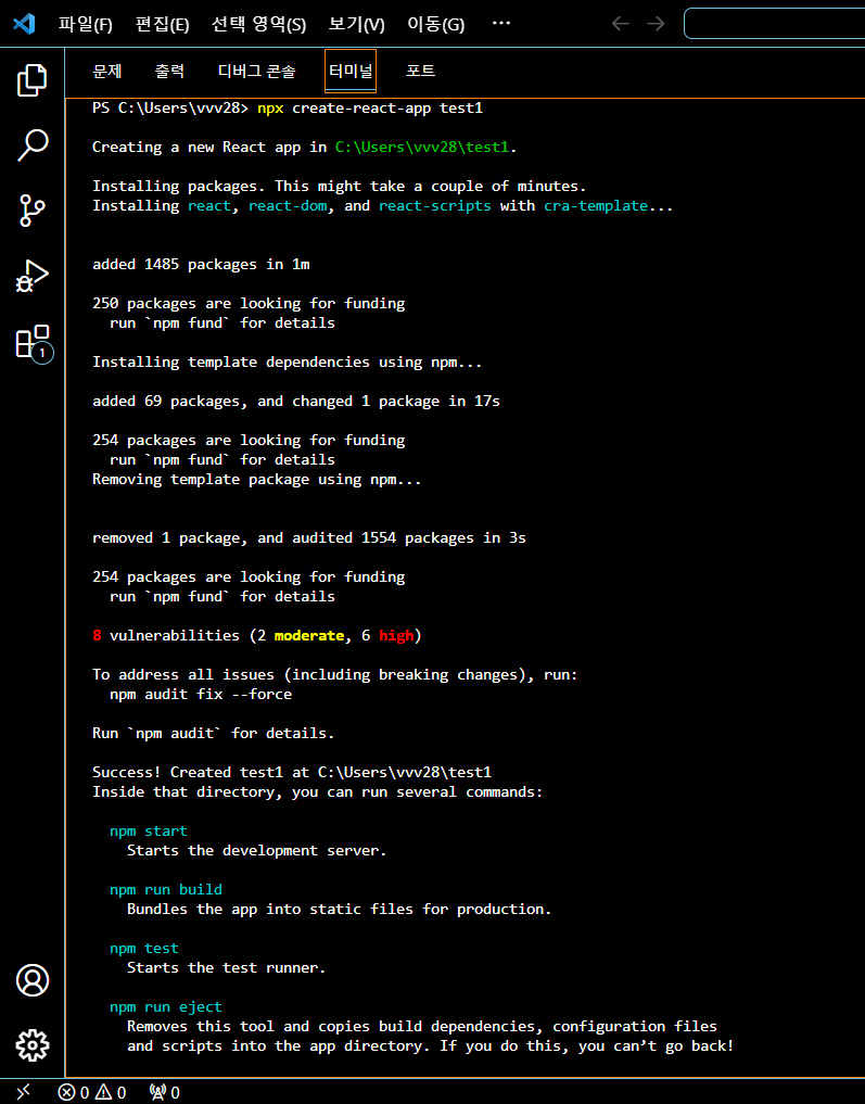 ※ react는 프로젝트 명으로 소문자만 허용합니다.