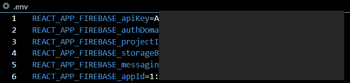 env 파일은 위와 같이 최상위 경로에 있어야 하며 반드시 작명은 REACT_APP_