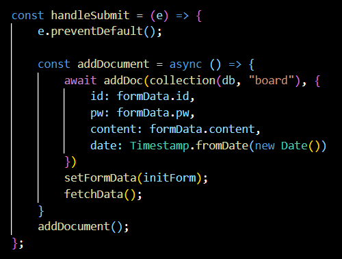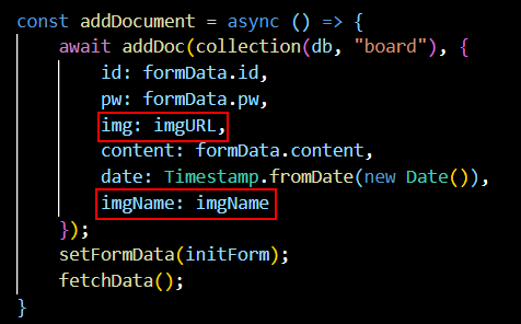 (uploadImg()에 .then으로 addDocument()을 연결하였으므로 uploadImg() 실행 시 내부에서 addDocument()도 실행됩니다.)