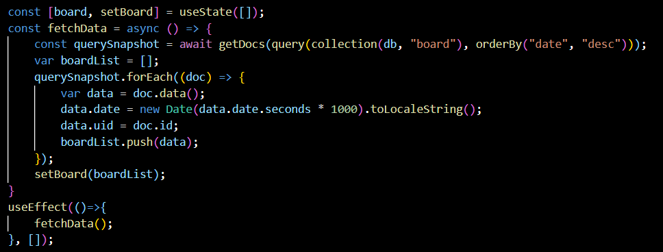 를 이용하여 쿼리 정렬할 때에 Firestore에서 보다 정밀하고 안전한 작업을 도와줍니다.위 기능들을 이용하면 Firestore를 이용해 게시판의 조회, 추가, 삭제 기능을 구현할 수 있습니다.