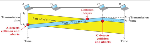 - 아래 그림과 같은 시간에 겹치게 되면 Collision 발생, 이후 재전송해야 한다.