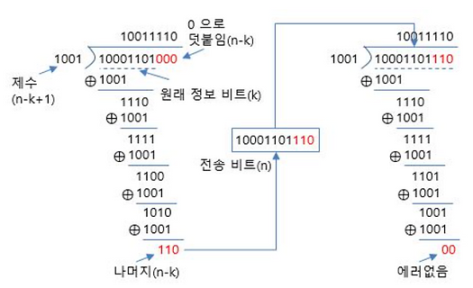 -> (에러 발견)잡음, 누락 등으로 인한 에러를 발견 (이후 재전송 등의 조치)
