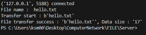 - Server 측에서도 확인을 위해 file_name을 출력합니다.