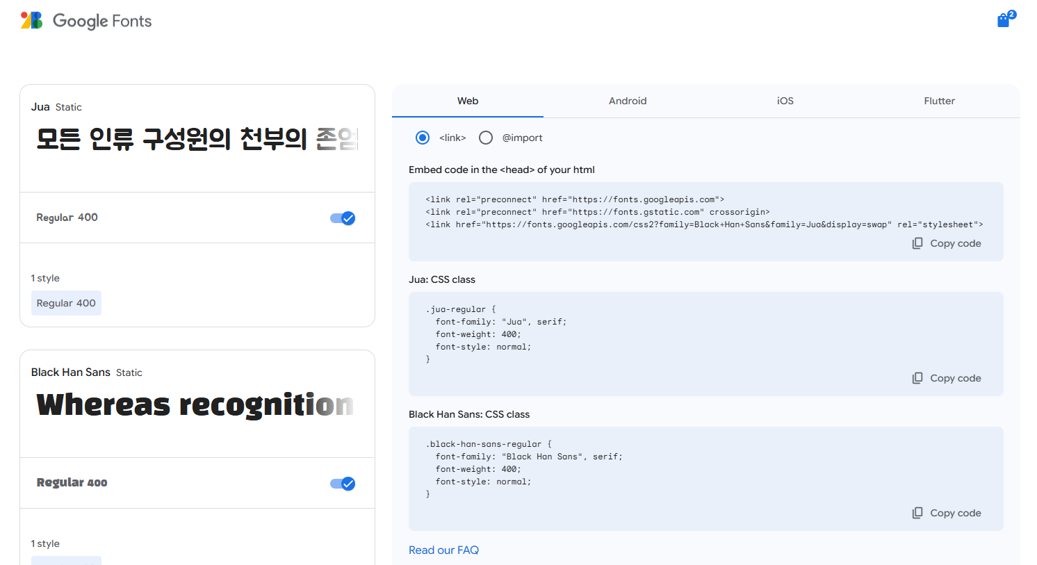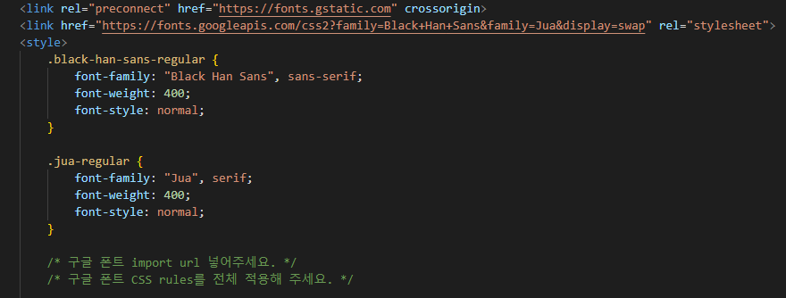 폰트도 마찬가지로 구글에서 슥 긁어오면 된다.