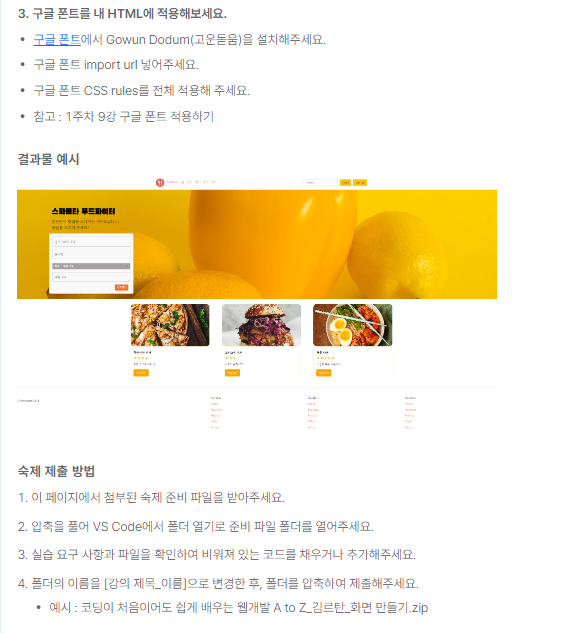 두 번째 이유는 사실 적을 내용도 그다지 없었는데 억지로 적다가, "이건 좀 취지에 맞지 않는것 같다."라는 생각을 하던 차, 실수로 뒤로가기를 눌렀더니 적던 TIL이 증발해버렸다. 이는 5일차와 6일차 사이에 하루가 비어있는 이유와 같다.3일차를 적는 이유는 3일차 강의의 마무리로 숙제가 있었고, 이를 해결하는 과정이 나중에 봤을 때 도움이 될 수 있지 않을까 싶은 마음에 적어보기로 했다.