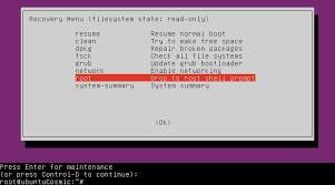 recovery mode에서 root를 선택