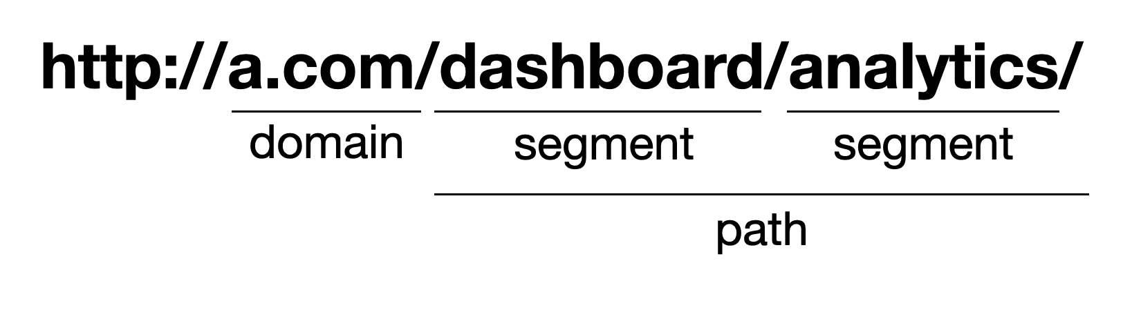 "http://a.com/dashboard/analytics/"라는 주소가 있을 때, "/dashboard/analytics/" 부분을 'path'라고 한다. 그리고 'dashboard'와 'analytics'는 각각 'segment'라고 부른다.