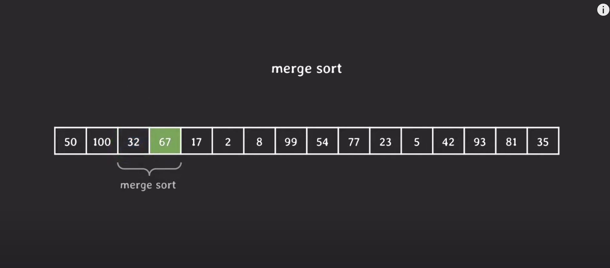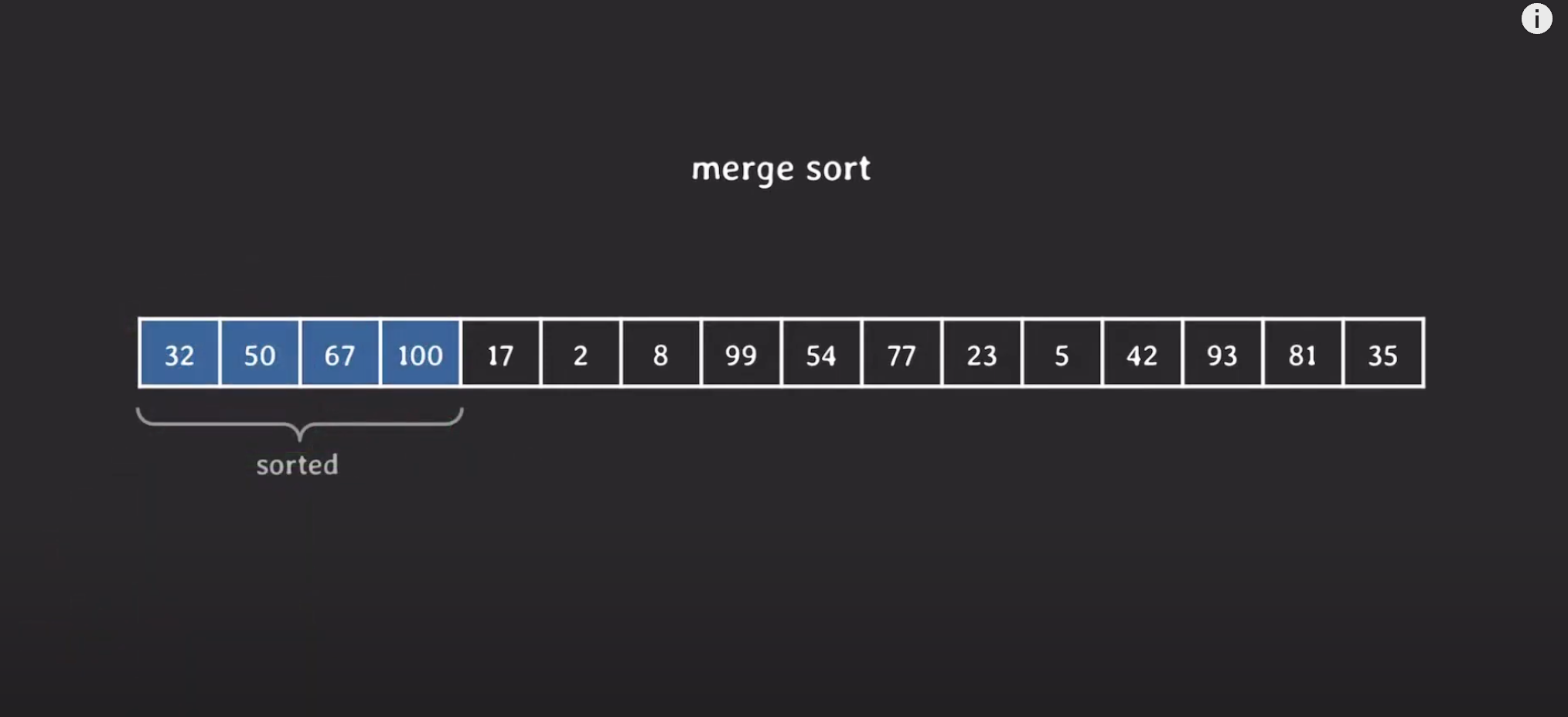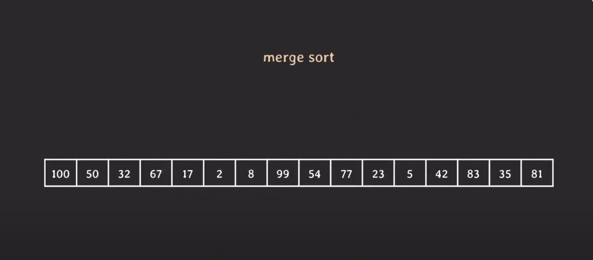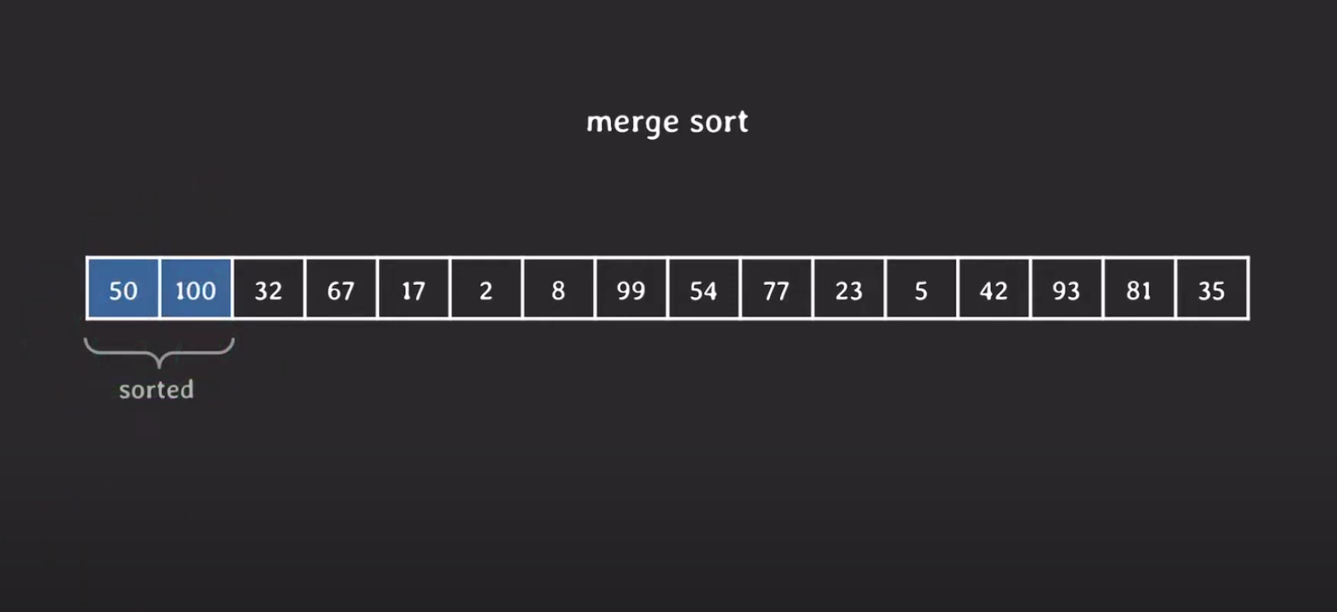 배열을 계속 반으로 분할하다보면 아래 그림처럼 하나의 요소만 남게 된다.(100)