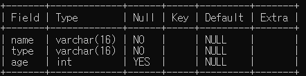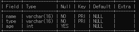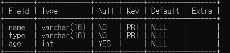 create table animal(name varchar(16) not null,type varchar(16) not null,age int,primary key (name,type));