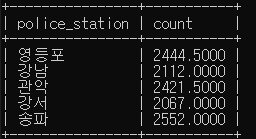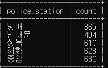select count(*) from police_station; #특정 컬럼을 넣어도 됨