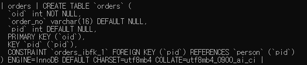 constraint FK_person foreign key (pid) references person(pid));