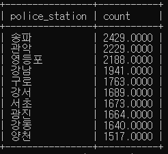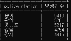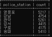 crime_status 에서 경찰서별로 그룹화 하여 경찰서 이름 조회